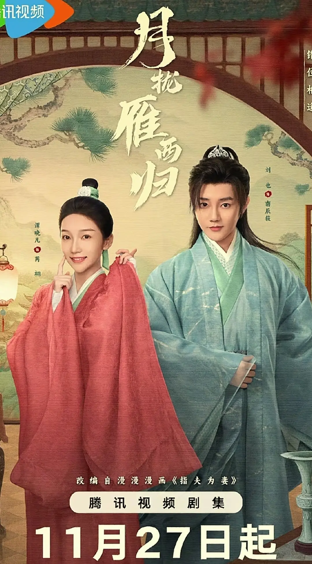 11月27日腾讯视频“零预热空降”的《月拢雁西归》,直接打破古偶剧的宣发套路——官微只提前一天甩了段15秒花絮,画面里刘也穿粉裙踩花盆底鞋摔得趔趄,还不忘捂住裙摆装端庄;谭晓凡扮男装憋笑到肩膀发抖,却硬撑着端官架子,这波“反差萌暴击”直接把网友的期待值拉满。开播当天,#刘也女装耳后箭囊疤藏不住了# #伪夫妻互拆台又互救名场面# 接连霸榜热搜,弹幕里全是“笑到捶床又被戳哭”“这剧怎么又甜又扎心”。这部改编自漫画《指夫为妻》的作品,跳出了工业糖精的古偶窠臼,用“男嫁女娶+双向反串”的外壳,装下了每个成年人都懂的“面具困境”,甜宠里掺着权谋,搞笑中藏着深意,越品越有嚼头。