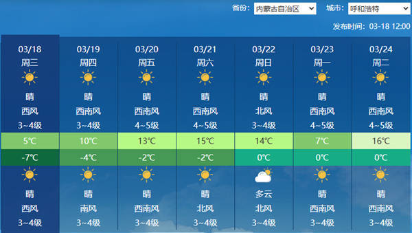 呼和浩特明起气温回升。(图片来源:中央气象台)